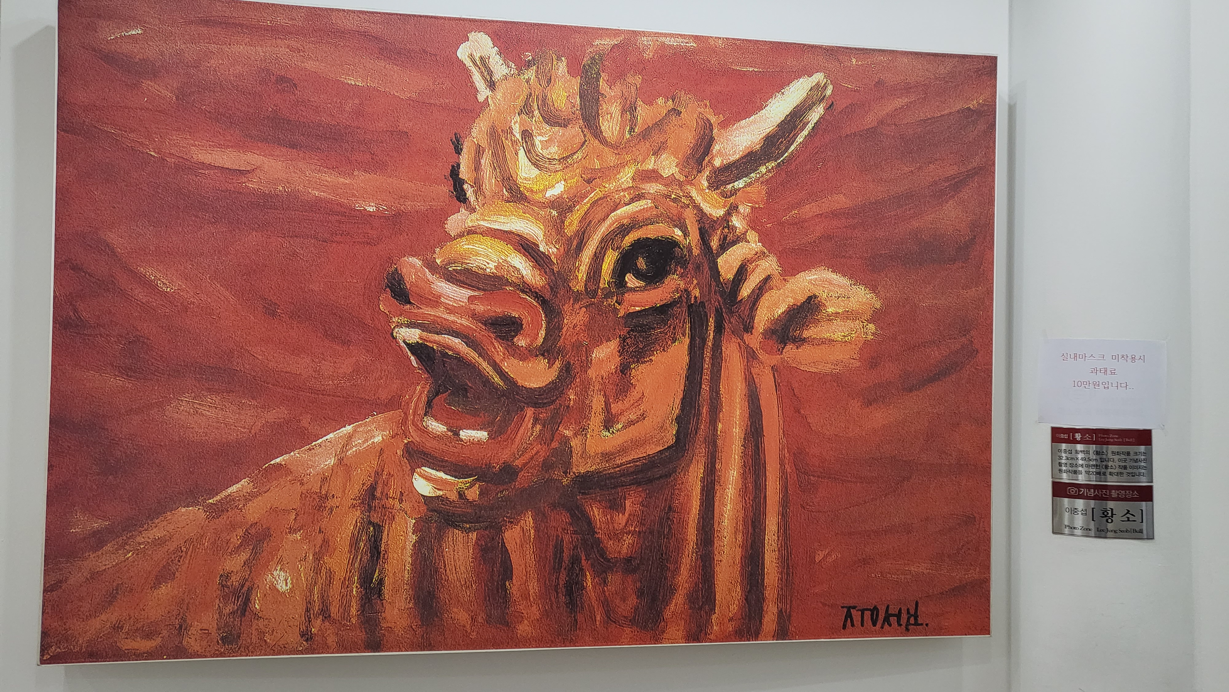 입구에 걸어둔 이중섭화가의 작품 '황소'입니다. 포토존이라 적혀있었습니다.