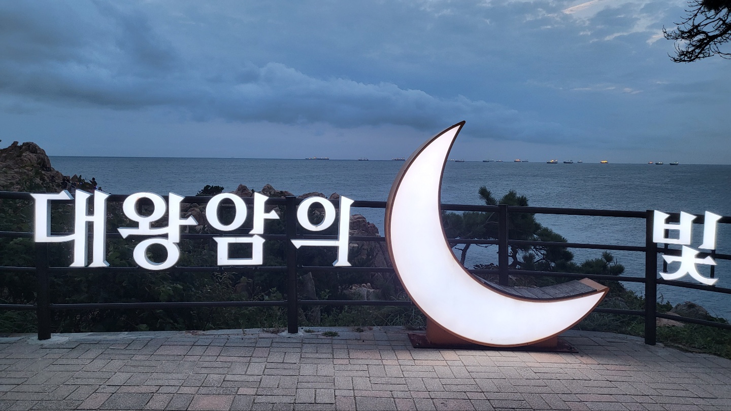 대왕암의 달빛을 한컷 찍는 순간 어둠과 함께 불빛이 밝아왔습니다. 어느새 이곳은 핫 포토존으로 바뀌어 줄을 서서 기다려야 한 컷을 겨우 허락 받을 수 있습니다.